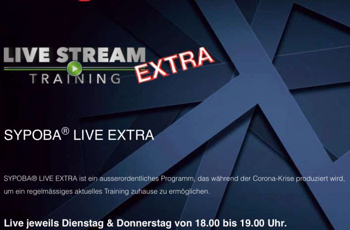 Entsprechend gilt es jedoch trotz ungewisser Zukunft sein Alltag auf irgend einer Form bewältigen zu können. Wir bei SYPOBA® haben diese Möglichkeit genutzt und das bereits seit einem Jahr laufende SYPOBA® LIVE Stream Training erweitert und als LIVE EXTRA Streaming Training für diese Zeit im Angebot.